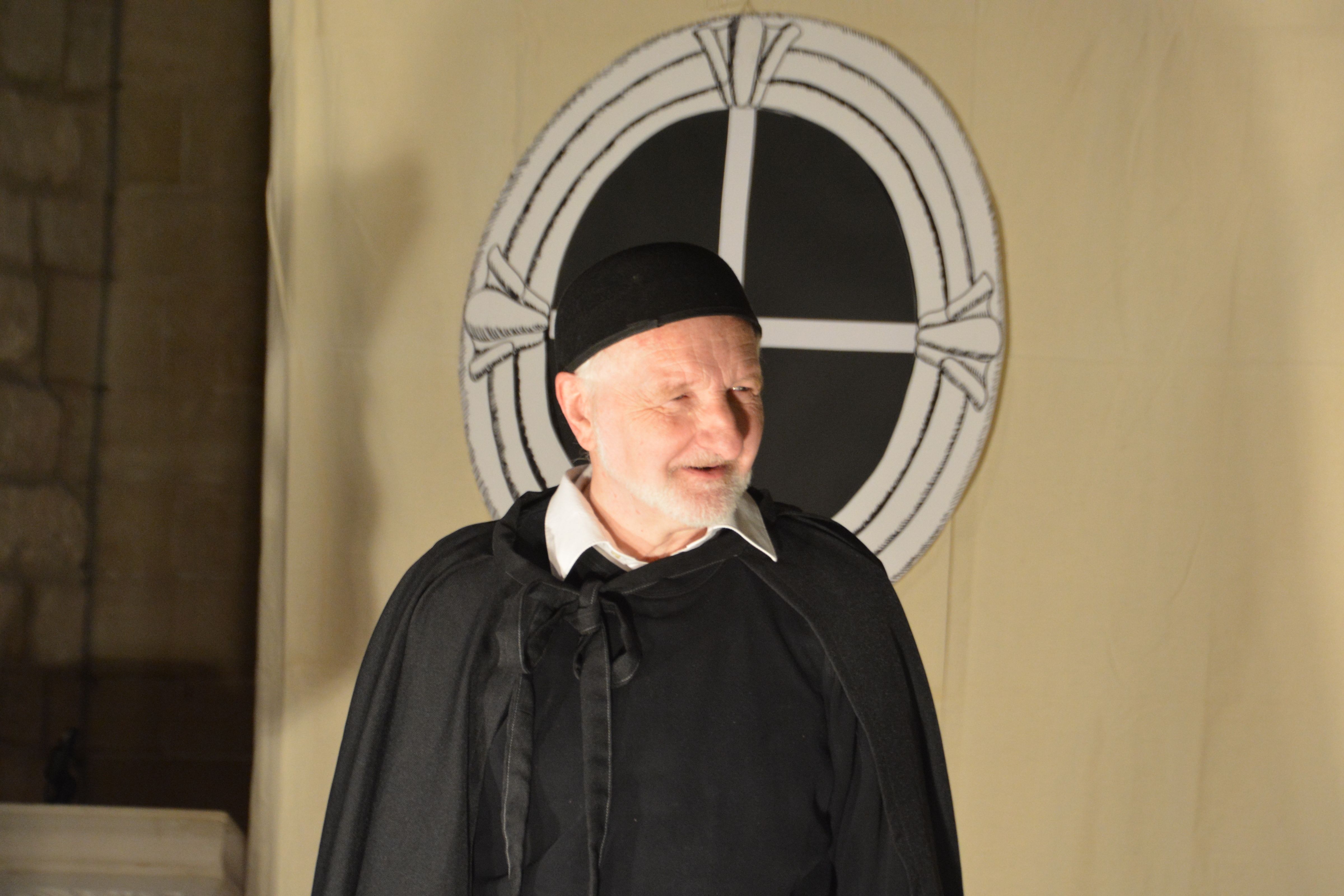 Luc Aerens est diacre, pédagogue, papa et grand-papa, comédien spécialisé en théâtre religieux burlesque.