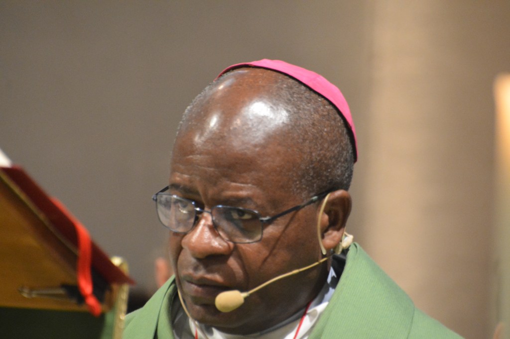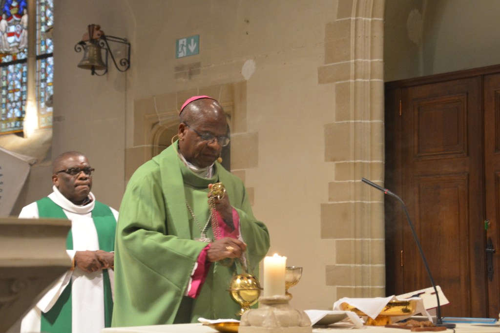 Mgr Placide Lubamba lors de son passage dans la paroisse le 2 octobre 2022.