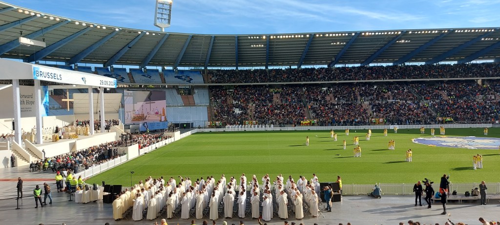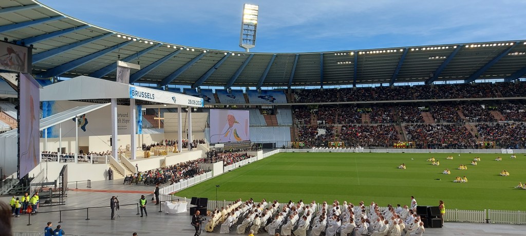 Quant à la messe au Heysel, l’ambiance était très bon enfant, recueillie, malgré la foule.