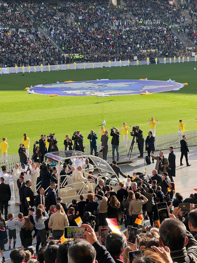 L’ambiance est montée à l’arrivée du roi et de la reine et explosive à l’arrivée de la papamobile et du Pape!