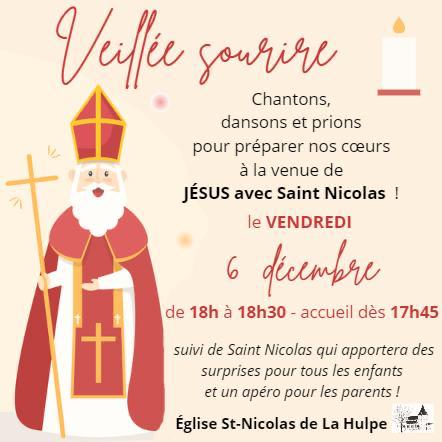 Veillée Sourire 4 décembre 2024 ~ Webmaster Alain ❤🕯Chers enfants, Venez nombreux pour rencontrer Saint Nicolasle 6 décembre à l’église Saint-Nicolas ! 🎉 Il paraît qu’il a tout prévu pour gâter les enfants et les parentset en plus il nous aidera à préparer nos cœurs à la venue de JÉSUS 🤍🕯 ! Partager : Cliquer pour imprimer(ouvre dans une nouvelle fenêtre) Imprimer Cliquer pour envoyer un lien par e-mail à un ami(ouvre dans une nouvelle fenêtre) E-mail Cliquez pour partager sur Facebook(ouvre dans une nouvelle fenêtre) Facebook Cliquez pour partager sur WhatsApp(ouvre dans une nouvelle fenêtre) WhatsApp Cliquer pour partager sur X(ouvre dans une nouvelle fenêtre) X Cliquez pour partager sur Pinterest(ouvre dans une nouvelle fenêtre) Pinterest J’aime chargement…