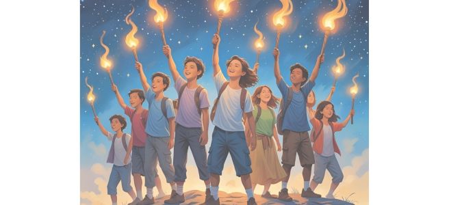 sur le parvis de l’église pour un grand jeu sur l’espérance