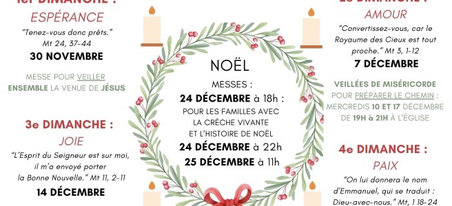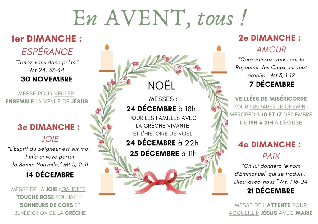 En Avent, TOUS! 24 novembre 2025 ~ Webmaster Alain Programme des différents moments dans notre paroisse, pour nous préparerà l’anniversaire de naissance de notre Seigneur, Jésus. Partager : Cliquer pour imprimer(ouvre dans une nouvelle fenêtre) Imprimer Cliquer pour envoyer un lien par e-mail à un ami(ouvre dans une nouvelle fenêtre) E-mail Cliquez pour partager sur Facebook(ouvre dans une nouvelle fenêtre) Facebook Cliquez pour partager sur WhatsApp(ouvre dans une nouvelle fenêtre) WhatsApp Cliquer pour partager sur X(ouvre dans une nouvelle fenêtre) X Cliquez pour partager sur Pinterest(ouvre dans une nouvelle fenêtre) Pinterest J’aime chargement…