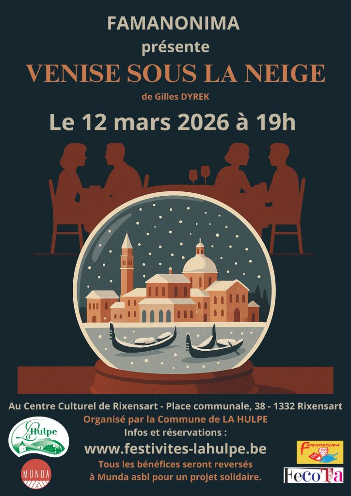 « Venise sous la neige » par la troupe Famanonima – Organisée par la commune de La Hulpe, les réservations se font sur son site : https://www.festivites-lahulpe.be/
