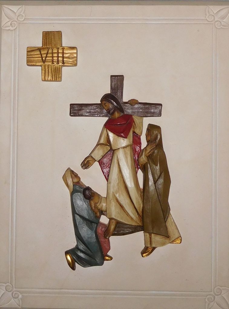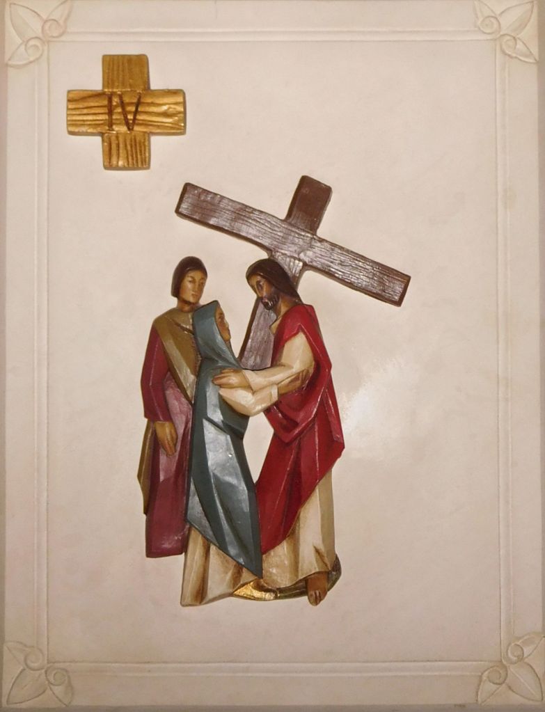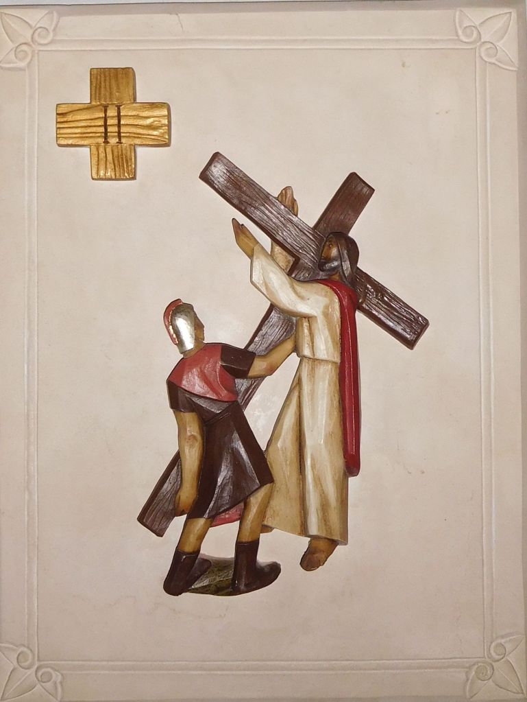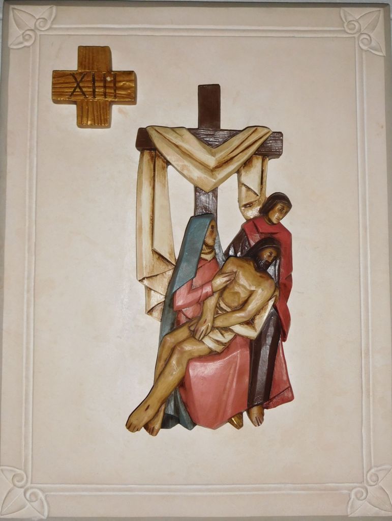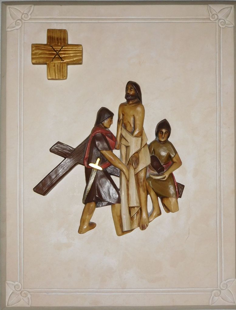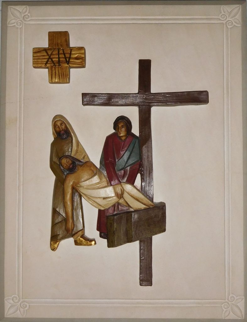 Le nouveau Chemin de Croix fut offert par un donateur anonyme et placé pour Pâques 2001. Il est en polyester polychrome et provient de l’atelier espagnol Artesania sacra.