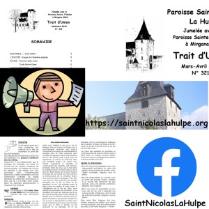 Le journal paroissial, ou Trait d’Union, vous informe de la vie paroissiale, avec les échos des événements passés, les annonces des prochaines activités, la présentation d’un ou d’une paroissien.ne et leur service rendu à la paroisse et, comme dernièrement, la présentation des équipes paroissiales. Mais aussi des rubriques à thèmes comme l’éditorial de notre curé ou nos vicaires, des articles de réflexion, des partages de catéchèse, une prière, un commentaire littéraire et parfois aussi des renseignements historiques ou architecturaux sur notre église, ses vitraux, les chapelles et potales, etc…. Le tout agrémenté de quelques photos et illustrations.