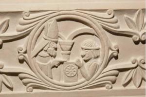 La frise comporte 4 médaillons dont chacune reprend une légende de la vie de Saint Nicolas.
