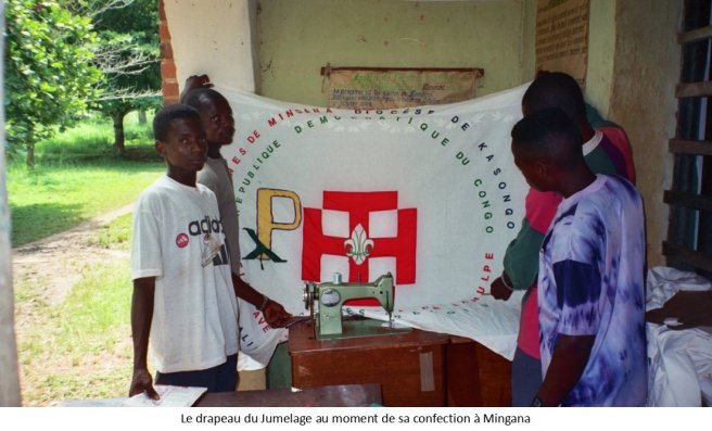 (Projet Afrique 2007 : 6 jeunes chefs scouts de La Hulpe apportent les bases du scoutisme aux jeunes du diocèse de Kasongo – pour la petite histoire, le voyage était prévu en 2006 ; cette année-là tous les jeunes du diocèse se rassemblaient à Kasongo pour les Journées Diocésaines de la Jeunesse -JDJ- et donc les jeunes de La Hulpe devaient rencontrer aussi les jeunes de Mingana. Mais … en raison des élections de 2006 en RDC et sur conseil des autorités belges, le voyage fut annulé par sécurité et reporté à 2007. Cette année-là les jeunes de Mingana ne purent pas venir à Kasongo).